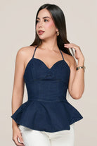 Este top tipo corset combina estructura y feminidad, moldeando la cintura con delicadeza y realzando el busto con su escote en forma de corazón. Su diseño con vuelo en la base crea una silueta equilibrada y sofisticada, perfecta para transmitir poder sin perder suavidad.