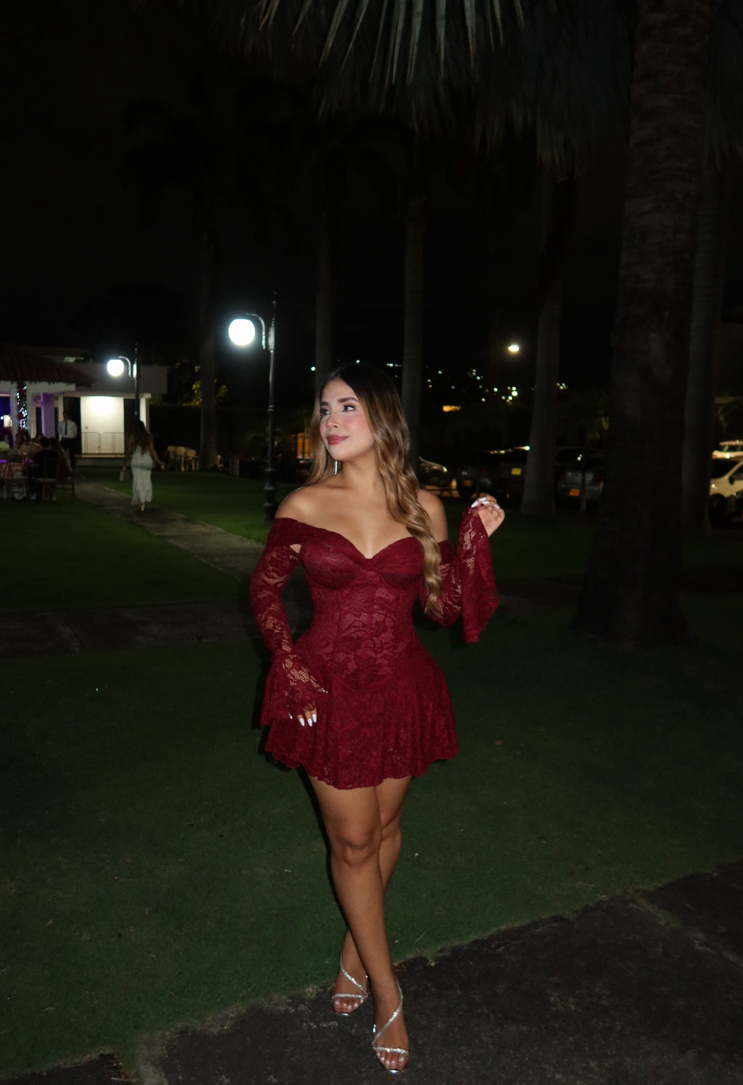 Toda la prenda está elaborada en tela blonda, un detalle protagonista que envuelve el cuerpo y eleva el diseño, aportando ese toque elegante y sensual que convierte al Vestido Angel en una pieza inolvidable.