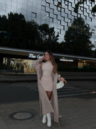 Este vestido corto en color beige es mucho más que una prenda elegante: está diseñado para realzar tu figura gracias a su faja interna con control de abdomen. Su silueta ajustada se adapta al cuerpo definiendo la cintura y alisando el vientre, mientras que su falda con volantes añade un toque femenino y sofisticado.