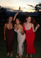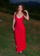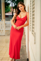 Vestido georgina con control de abdomen largo rojo